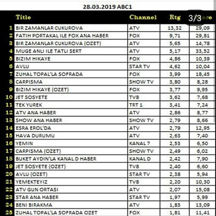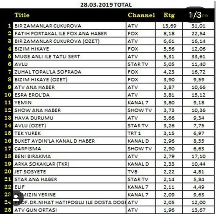 Rating Tv 🇹🇷 din 28.03.2019