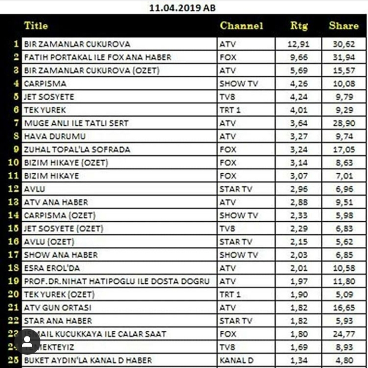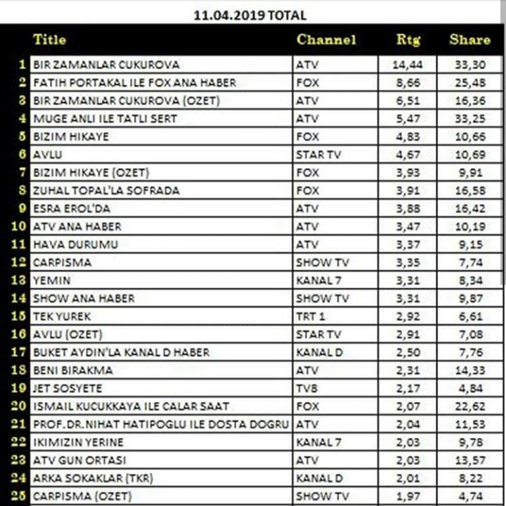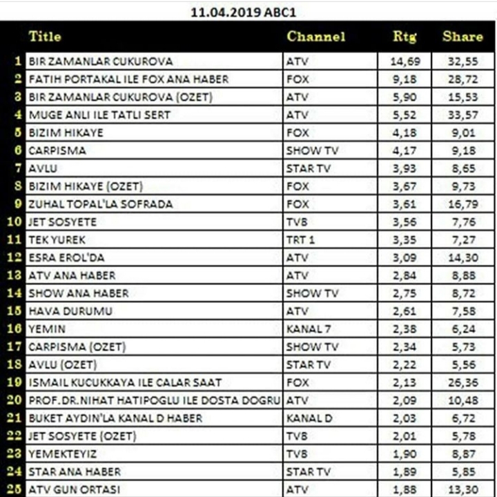 Rating Tv 🇹🇷 11.04.2019