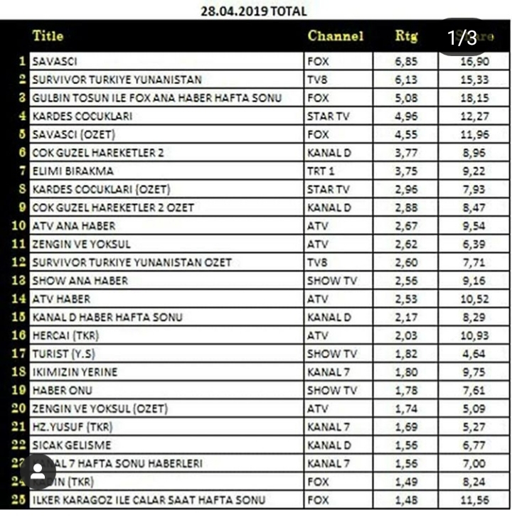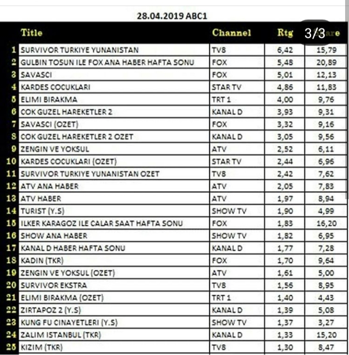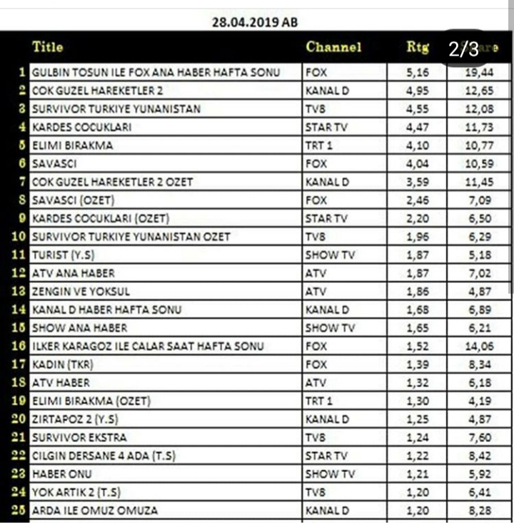 Rating Tv 28.04.2019