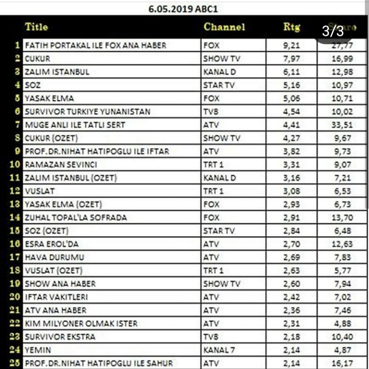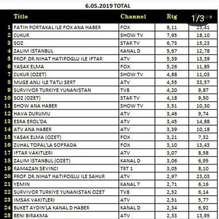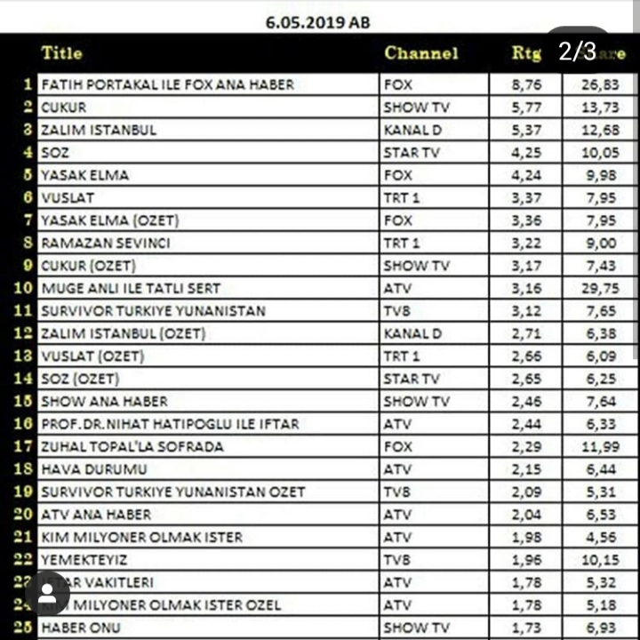Rating Tv 07.05.2019
