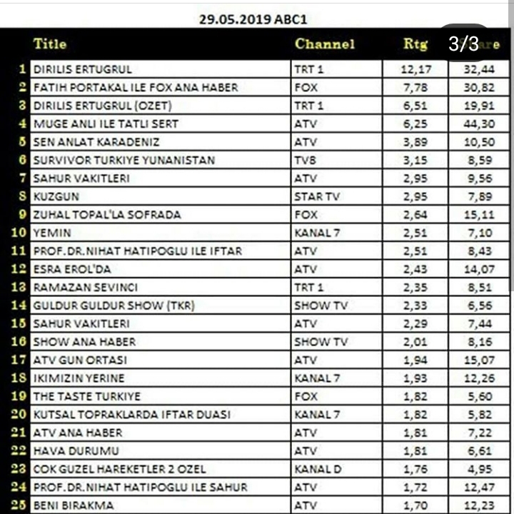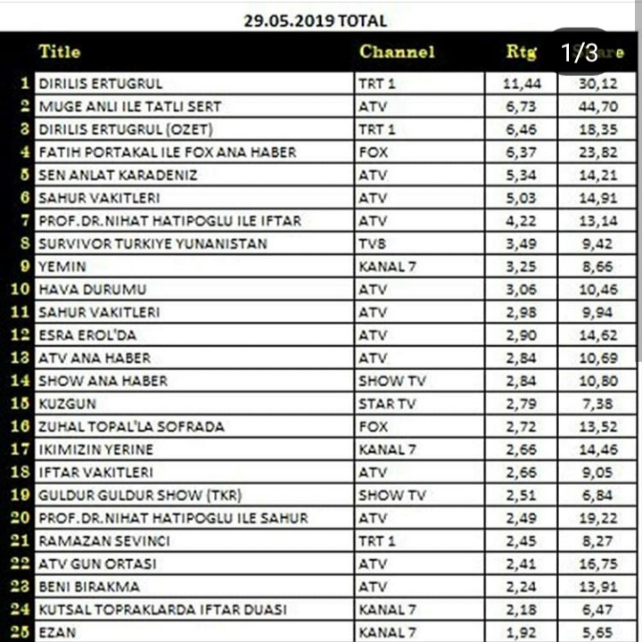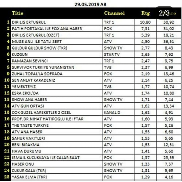 Rating Tv 29.05.2019