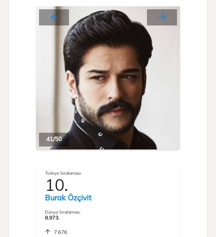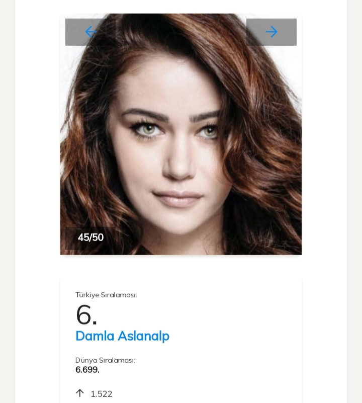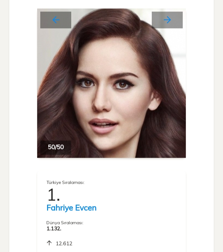 Aşadar, actrița Fahriye Evcen urcă 12 612 poziții în clasament, şi o detronează pe Ayça Ayşin Turan, clasânduse pe locul întâi.
