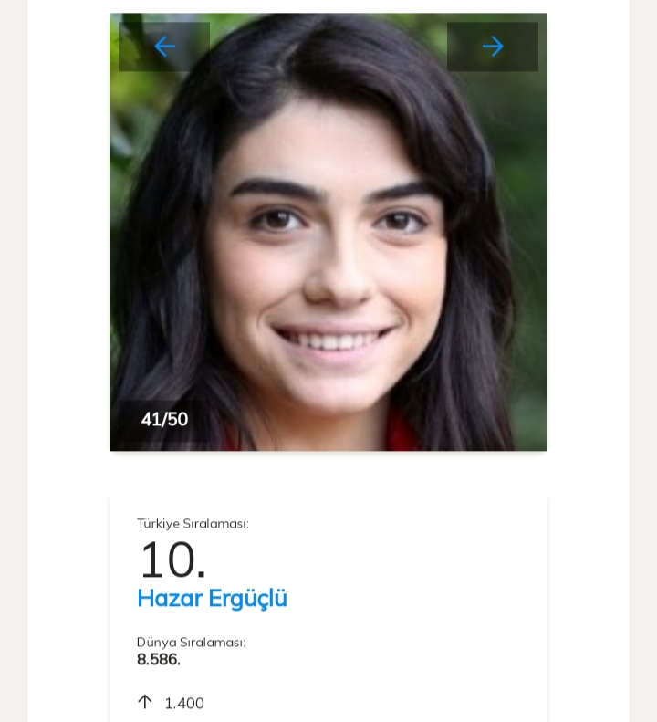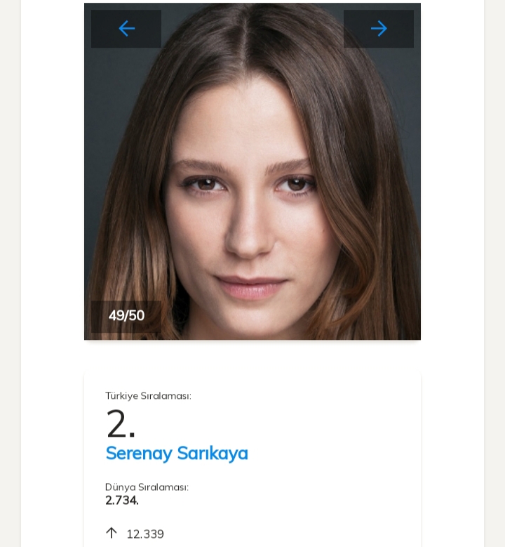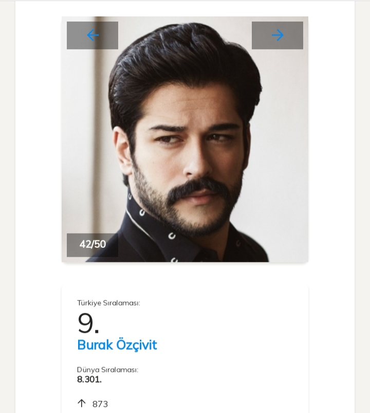 Prima poziție în acestă săptămână o ocupă frumoasa actriță Tuba Büyüküstün, urmată de Serenay Sarıkaya.