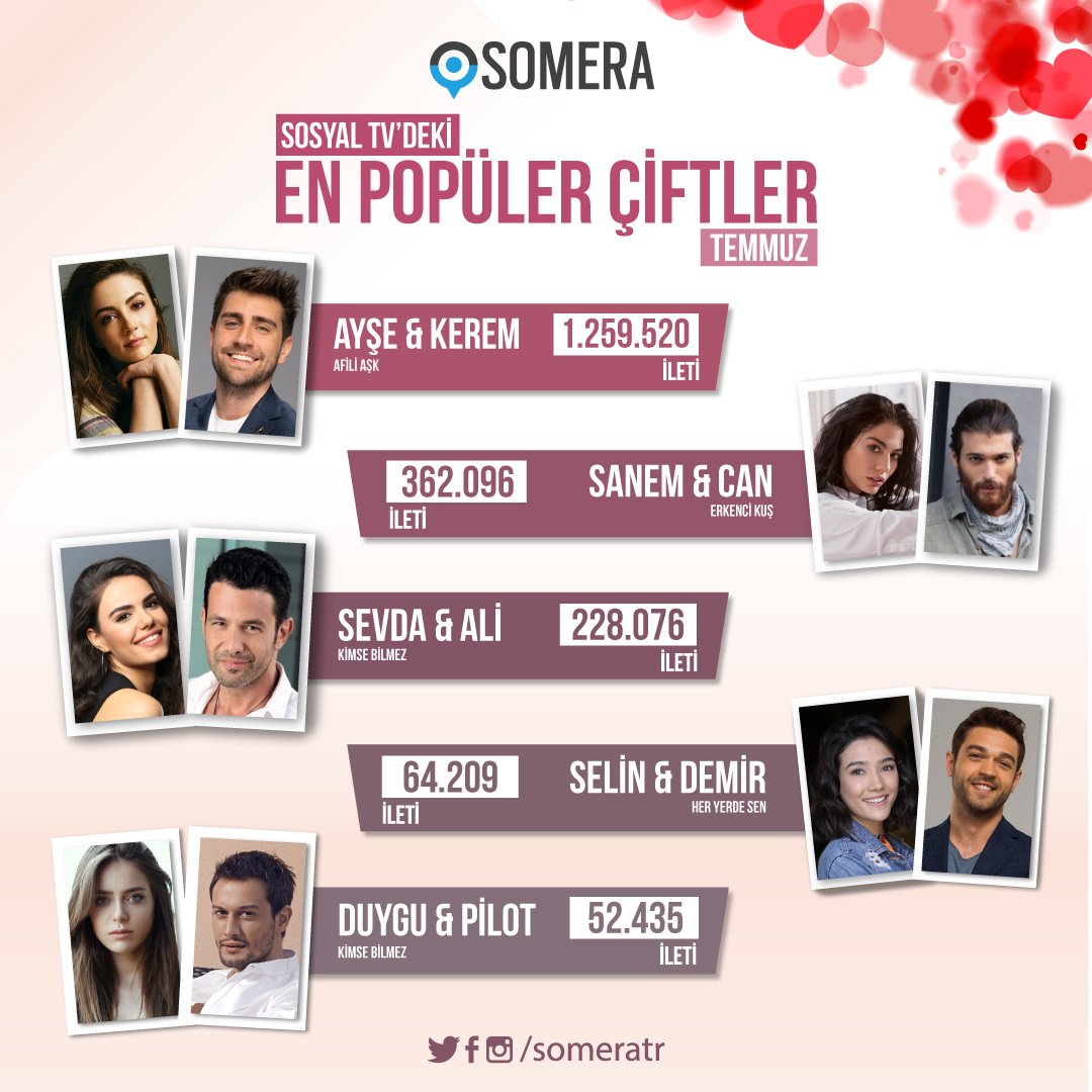 SOMERA( Servicii de măsurare, analiză şi cercetare în social media) a dat publicității clasamentul cu cele mai discutate cupluri din seriale, ale lunii iulie.