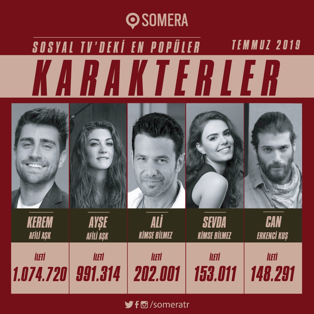SOMERA( Servicii de măsurare, analiză şi cercetare în social media) a dat publicității clasamentul cu cele mai populare personaje din seriale, ale lunii iulie.