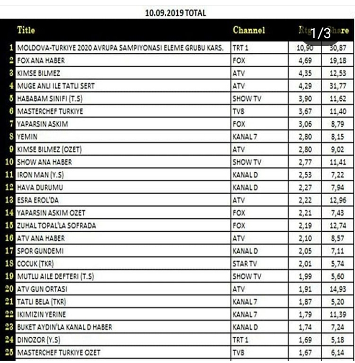 Rating Tv 10.09.2019