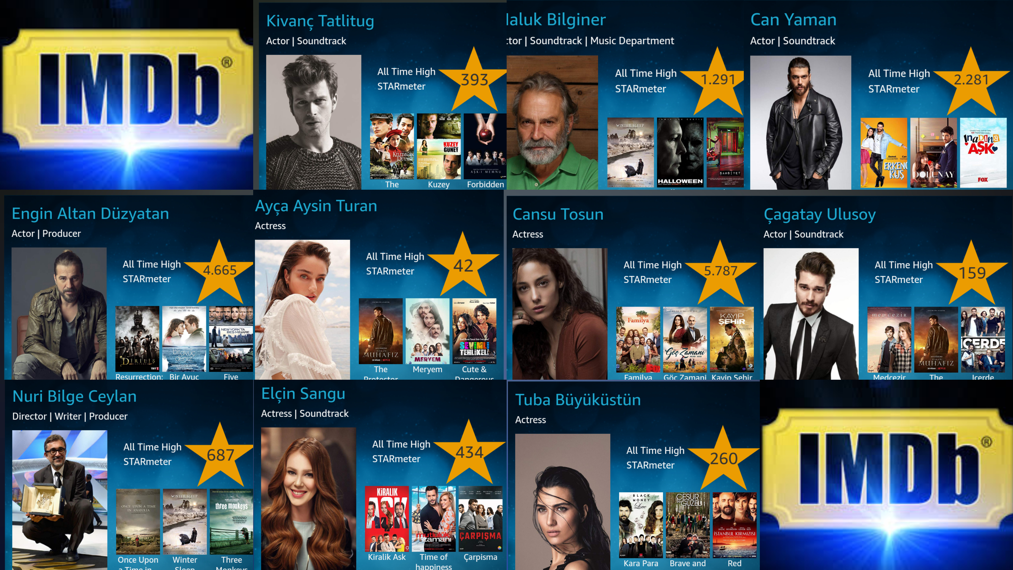 IMDb (Internet Movie Database ) este cea mai mare bază de date, ce deține informațiile a peste 11.000.000 de actori din întreaga lume.