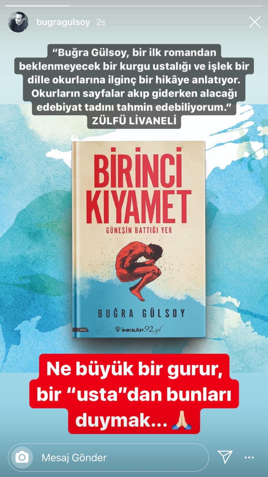De curând, actorul Buğra Gülsoy, a lansat prima sa carte. Romanul se intitulează Birinci Kıyamet/Prima Judecată.