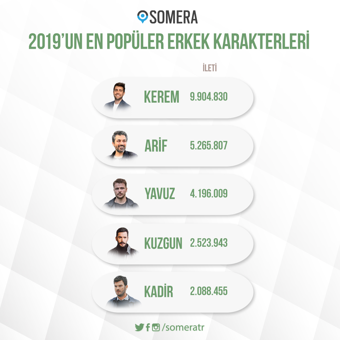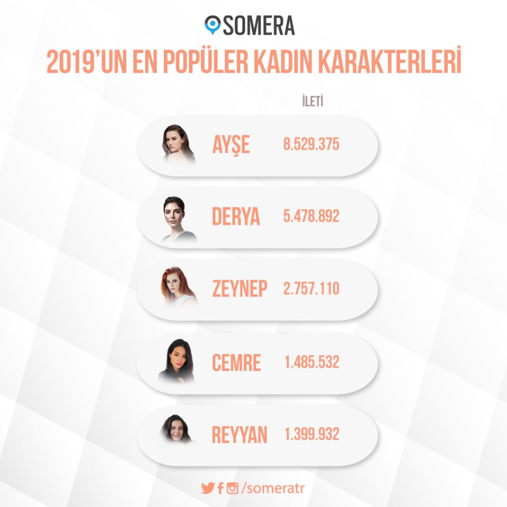 SOMERA( Servicii de măsurare, analiză şi cercetare în social media) a dat publicității clasamentul cu cele mai discutate personaje din seriale în social media, din anul 2019.