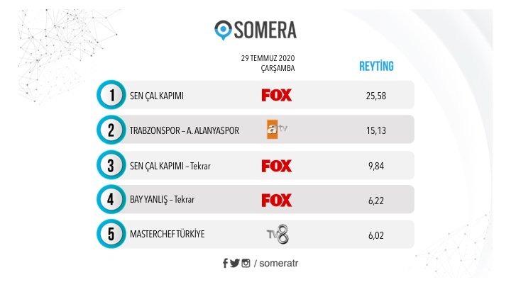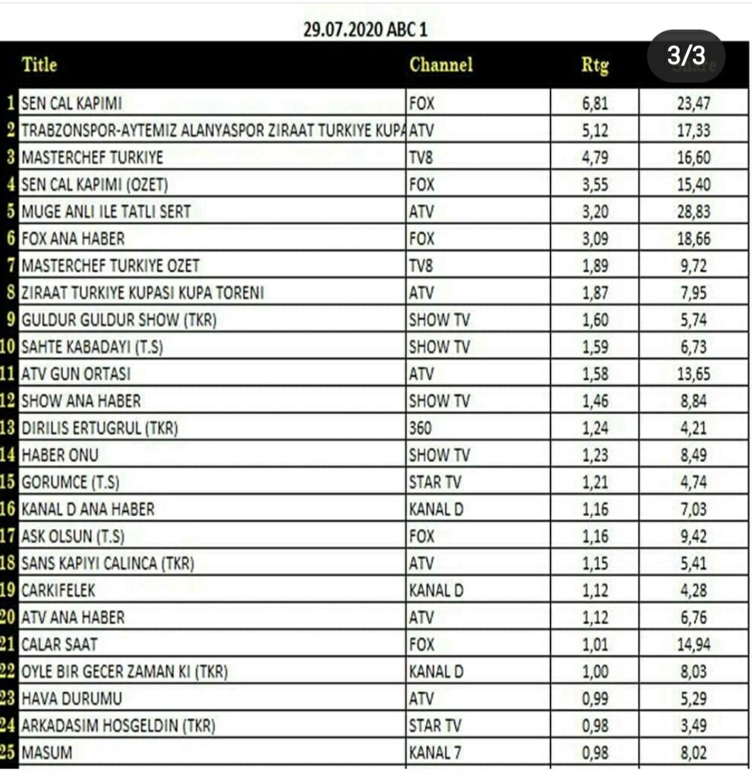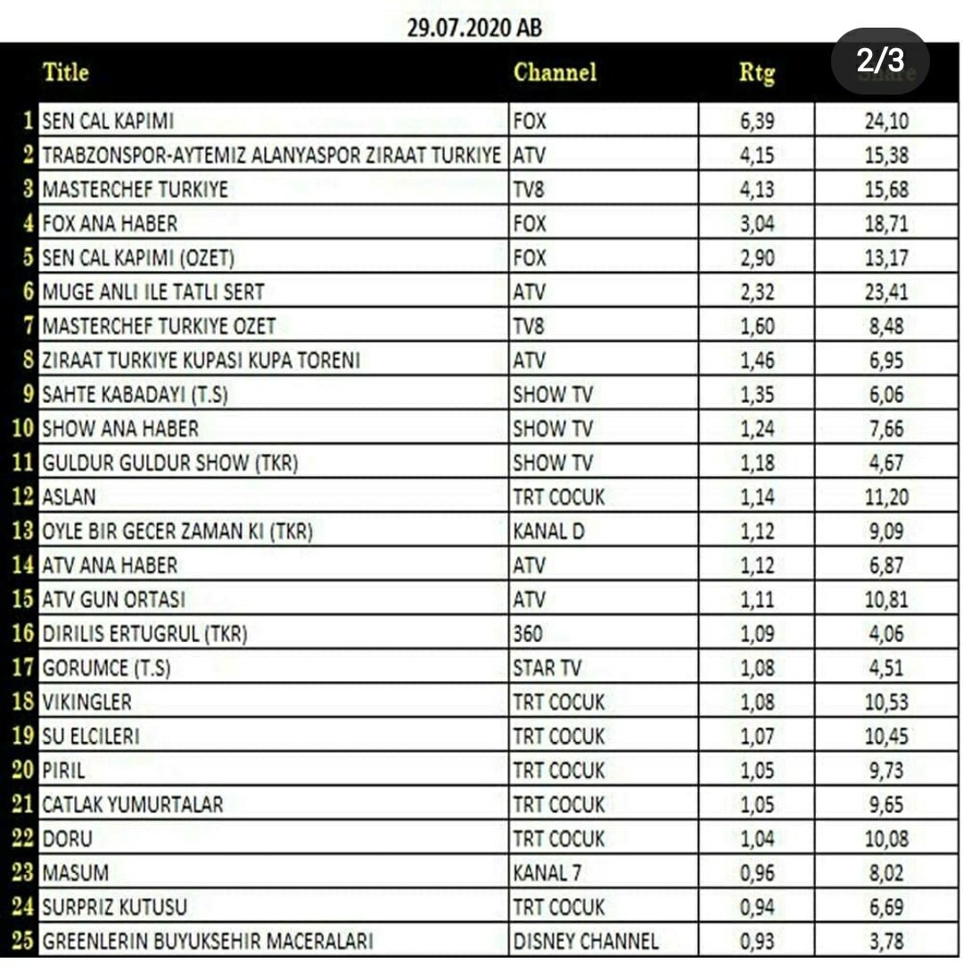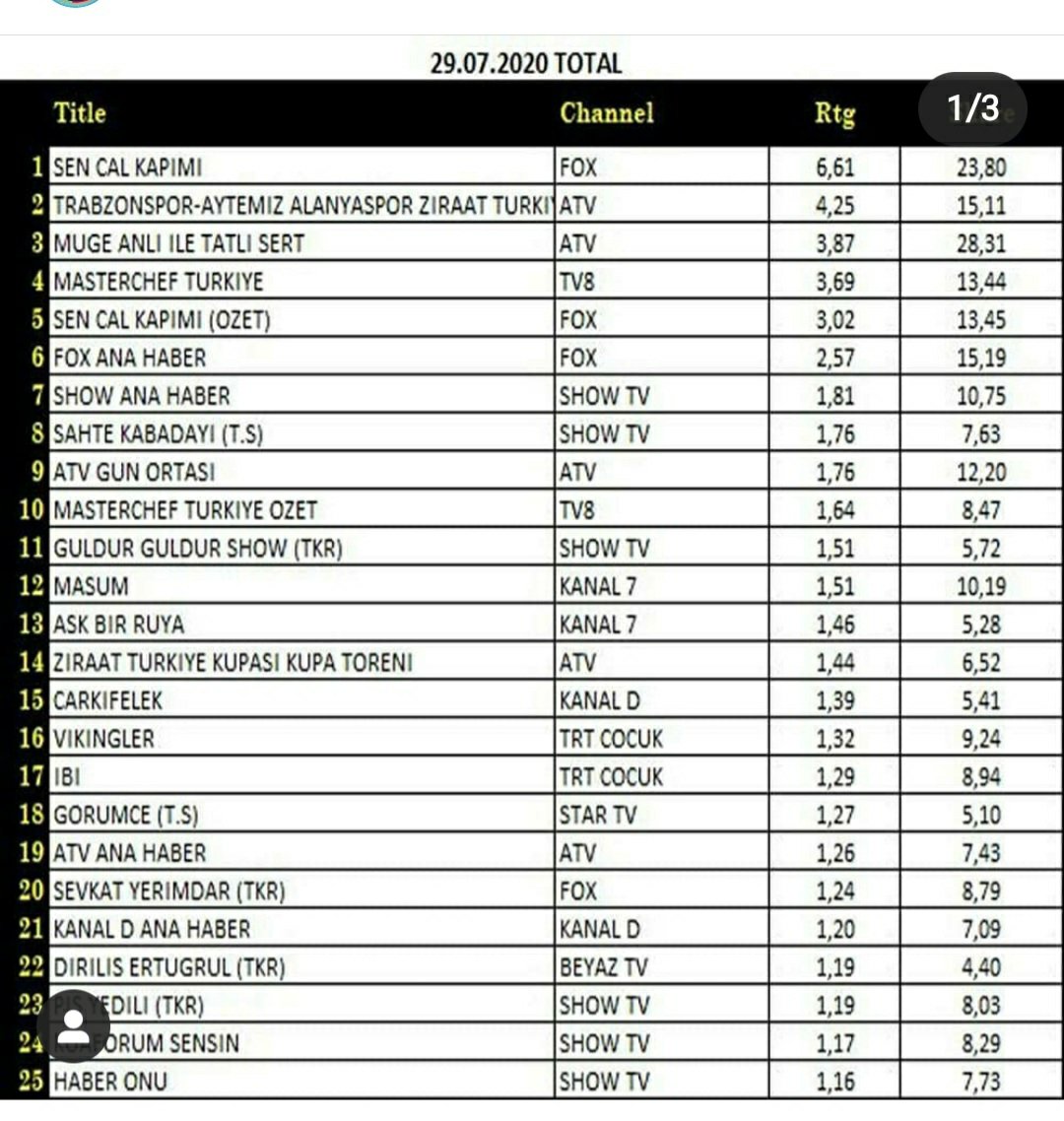 Cei drept, cu un rating puțin mai mic, datorită finalei meciului de fotbal dintre Trabzonspor şi Alanyaspor din Cupa Turciei.
