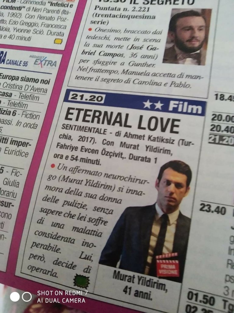 Și aici, după bunul succes al serialului ,,Come Sorelle” (Sevgili Geçmiş) și a filmului TV ,,Bold Pilot” (Şampıyon), urmează un nou basm turcesc, intitulat ,,Eternal Love” (Sonsuz Ask) pe care Canale 5 îl va difuza în prime time vineri 4 septembrie 2020.